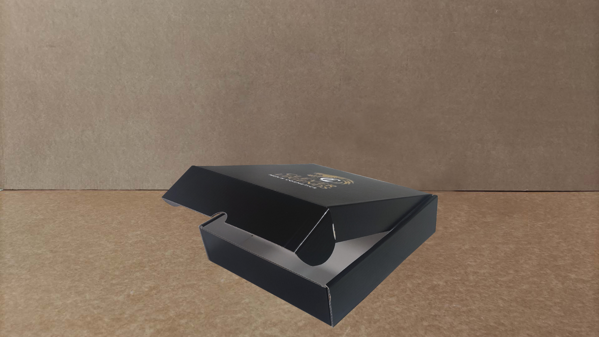 Caja fabricada en cartón microcanal estucado a una cara de 1,5mm, impreso a una cara a cuatro colores con tintas HP Latex, 100% ecológicas. Medidas interiores 19x20x5 cms.