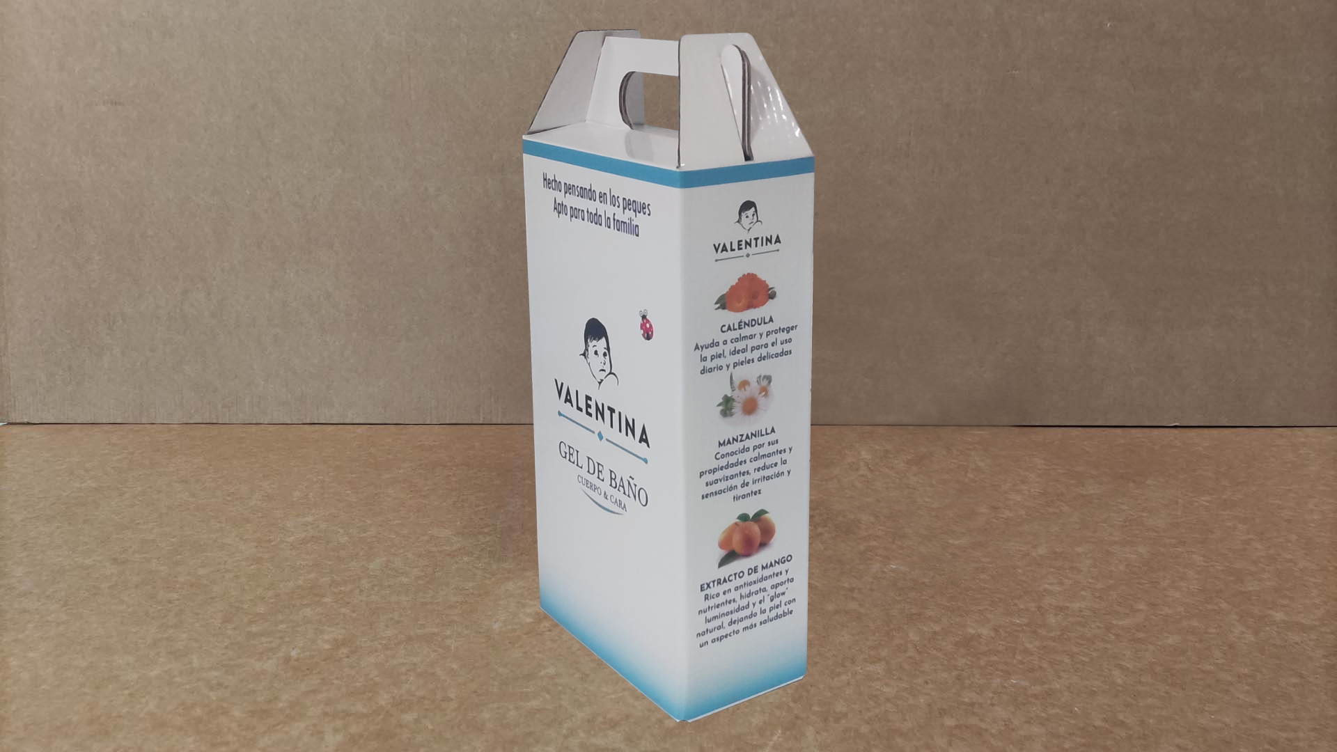 Caja fabricada en cartón microcanal estucado a una cara de 1,5mm, impreso a una cara a cuatro colores con tintas HP Latex, 100% ecológicas. Medidas 11,9x6x25,1 cms.