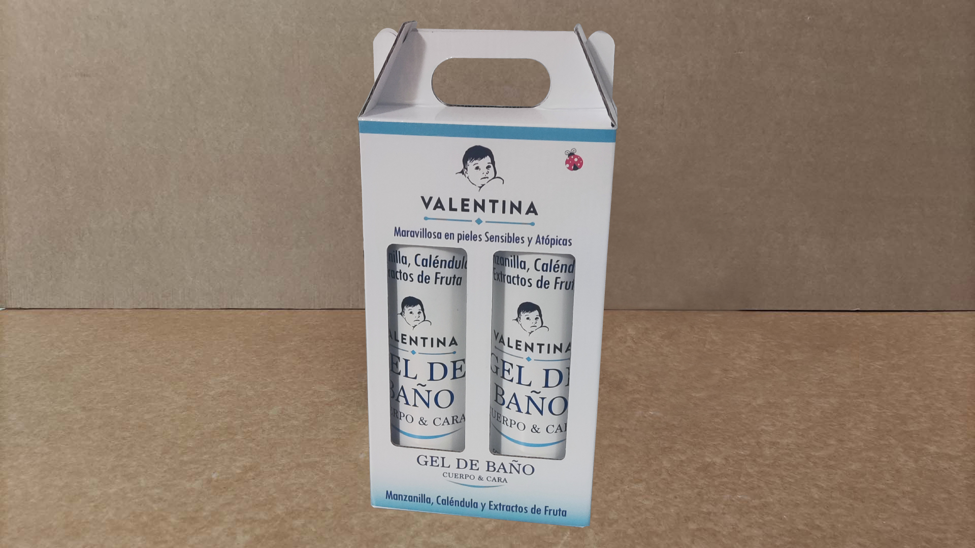 Modelo: CC-014 Caja de cartón con asa para 2 botes/botellas